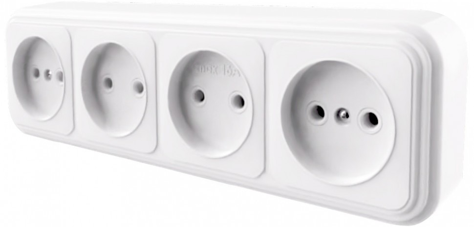 Розетка 4-местная без заземляющего контакта, 250В, 16А, IP20, PST16-60-20 (RA 16-464-Б), белый