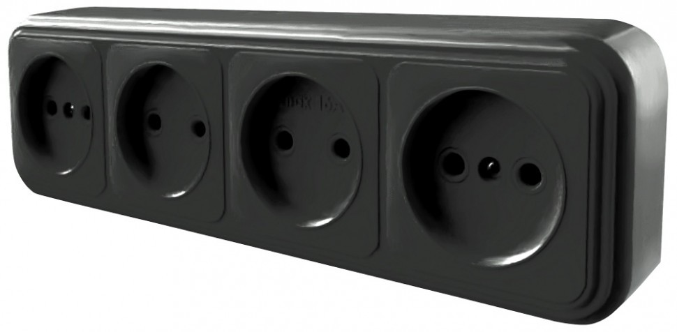 Розетка 4-местная без заземляющего контакта, 250В, 16А, IP20, PST16-60-20 (RA 16-464-Ч), черный