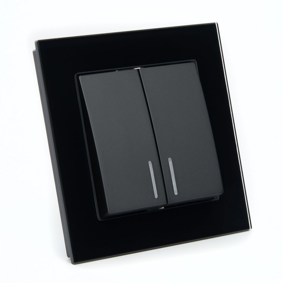 Выключатель 2-клавишный c индикатором 250В, 10А, серия Катрин, GLS10-7002-05, черный