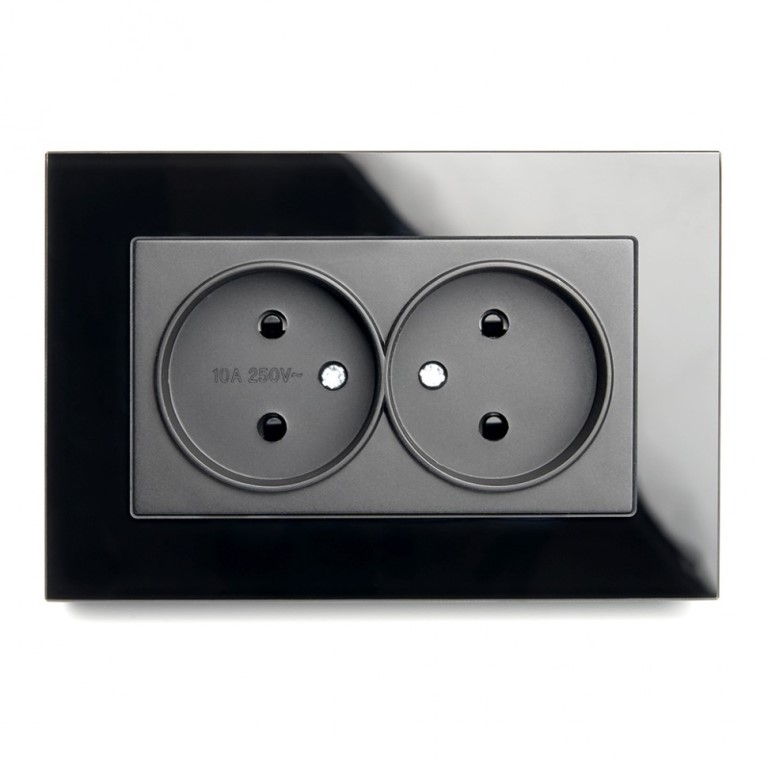 Розетка 2-местная с защитной шторкой б/з, 250В, 10А, серия Катрин, GLS10-7013-05, черный