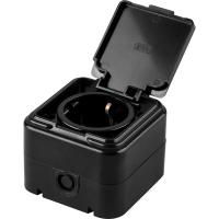 Розетка 1-местная с заземляющим контактом, с крышкой, 250В, 16А, IP44, PST16-21-44 (RA 16-211-Ч), черный
