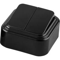 Выключатель двухклавишный открытой установки, 250В, 6А, IP20, черный, PSW06-22-20 (VA 56-232-Ч)