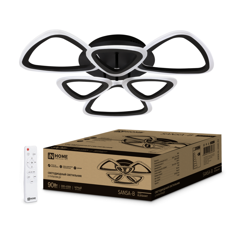 Светильник светодиодный ELEGANT SANSA-90B 90Вт 230В 3000-4000-6500K 7000Лм 650х650х130мм c пультом Д