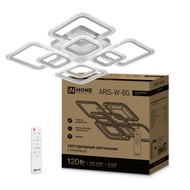 Светильник светодиодный ELEGANT ARIS-W-BG 120Вт 230В 3000-6500K 8400Лм 590х590х115мм ПУ белый IN HOM