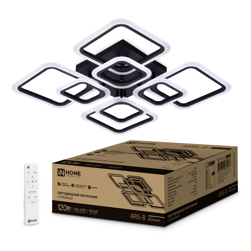 Светильник №светодиод ELEGANT ARIS-B 120Вт 230В 3000-6500K 8400Лм 590х590х130мм c пультом ДУ черны