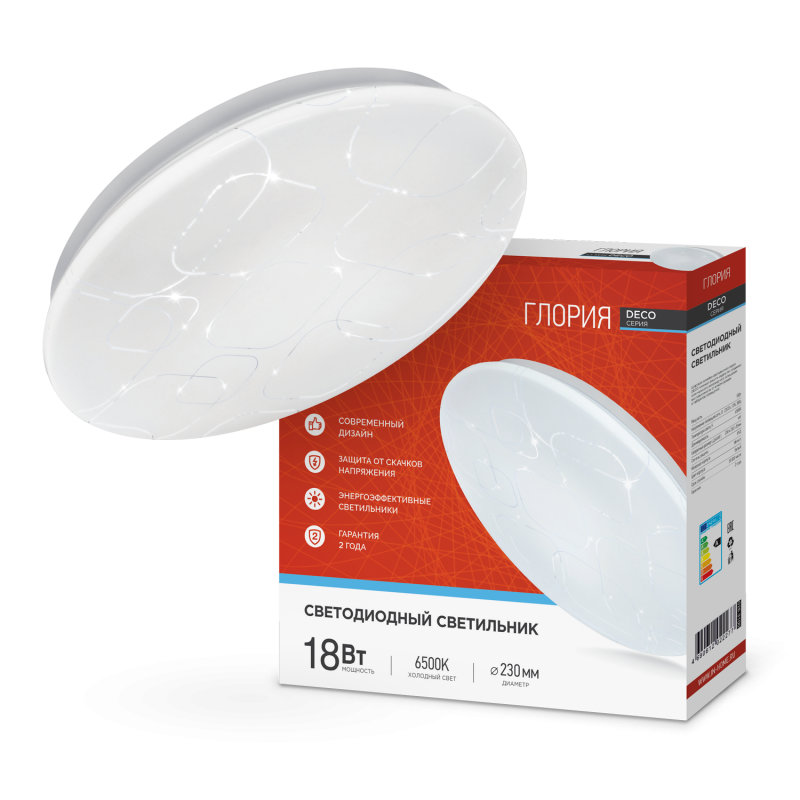 Светильник светодиодный серии DECO 18вТ 230В 6500К 1170Лм 230*55мм ГЛОРИЯ IN HOME