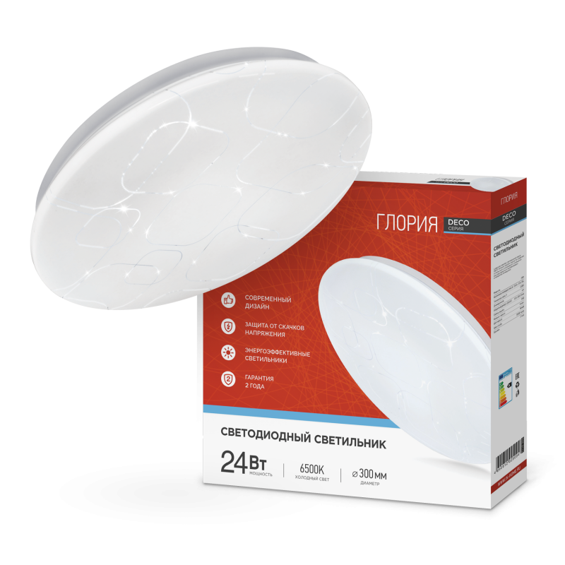 Светильник светодиодный серии DECO 24Вт 230В 6500К 1560Лм 330х55мм ГЛОРИЯ IN HOME