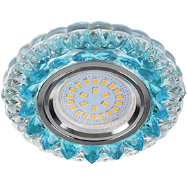 Ecola MR16 LD7009 GU5.3 Свет встр искристый с подсветкой "Кристалл" Прозрачный и Голубой/Хром 30х95