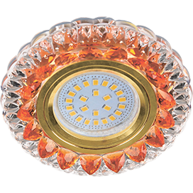 Ecola MR16 LD7009 GU5.3 Свет встр искристый с подсветкой "Кристалл"Прозрачный и Янтарь/Золото 30х95