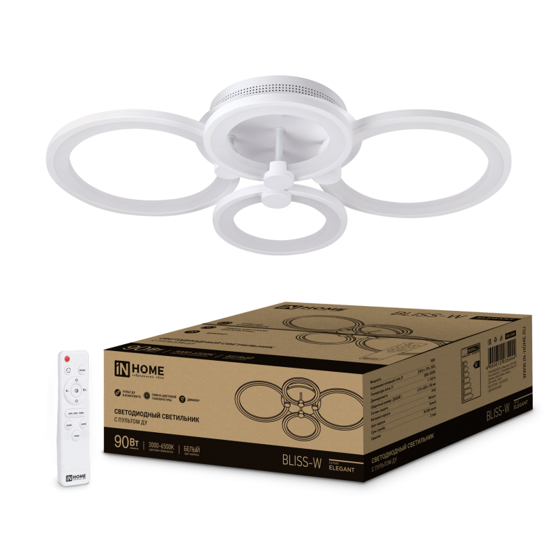 Светильник светодиодный ELEGANT BLISS-W 90Вт 230В 3000-6500K 7000Лм 610х400х130мм c пультом ДУ белый