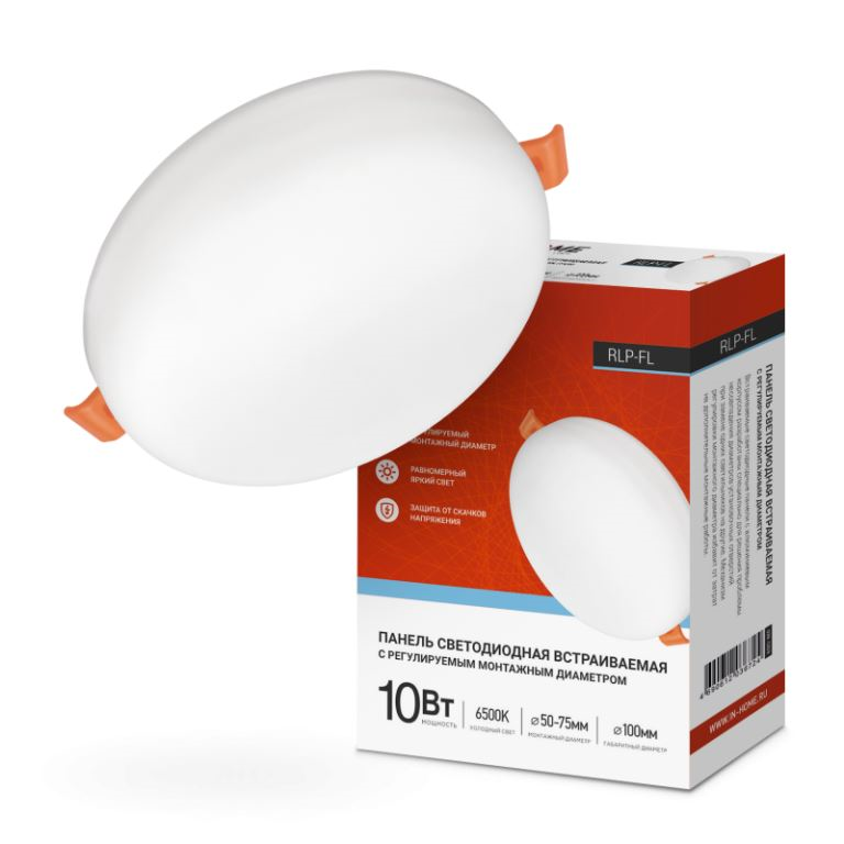 Панель светодиодная встраиваемая безрамочная RLP-FL 10Вт 230В 6500К 900Лм 100мм с рег. монтаж. 50-75