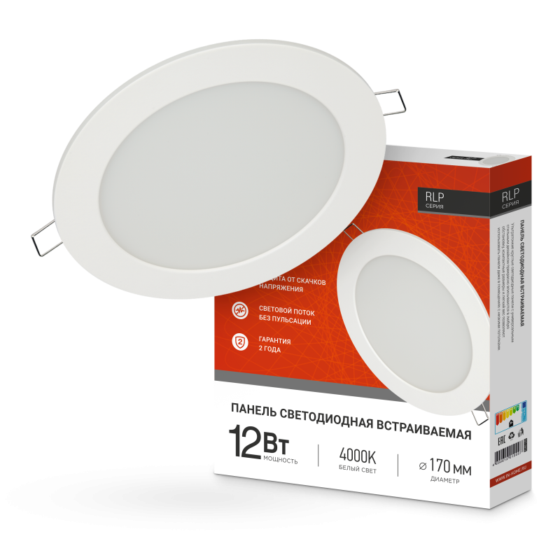 Панель светодиодная встраиваемая круглая RLP 12Вт 230В 4000К 840Лм 170мм белая IP40 IN HOME