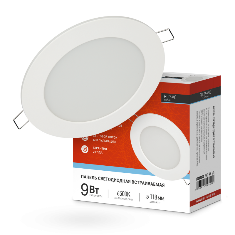 Панель светодиодная встраиваемая круглая RLP-VC 9Вт 230В 6500К 630Лм 118мм белая IP40 IN HOME