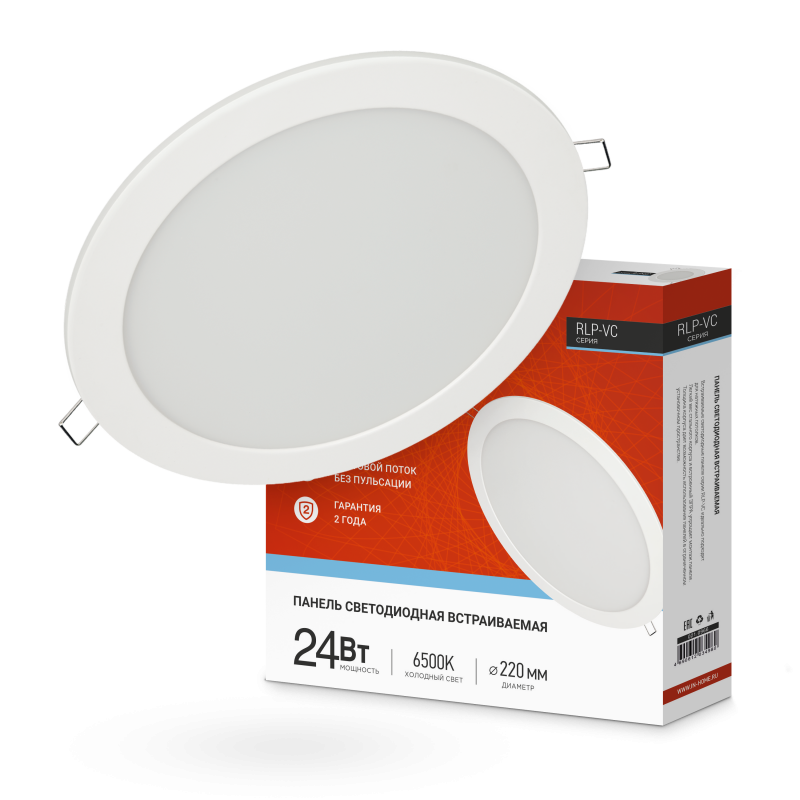 Панель светодиодная встраиваемая круглая RLP-VC 24Вт 230В 6500К 1920Лм 220мм белая IP40 IN HOME