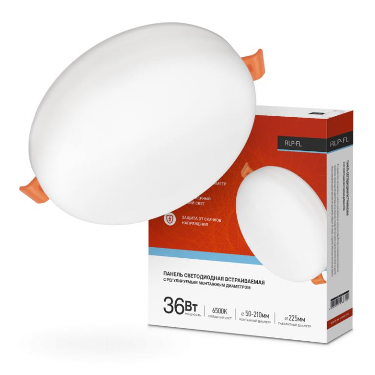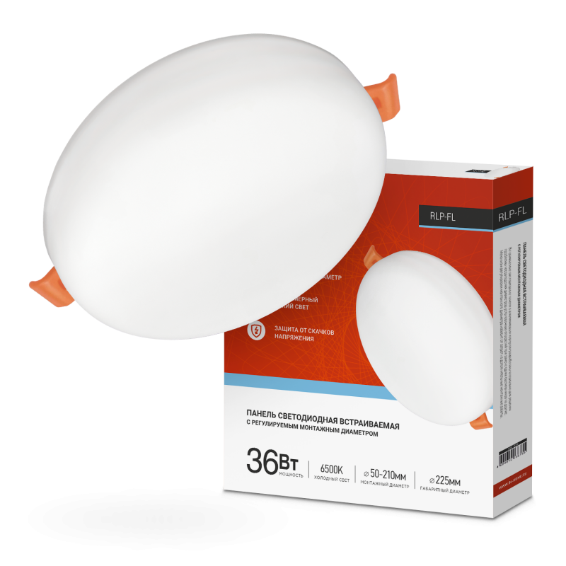 Панель светодиодная встраиваемая безрамочная RLP-FL 36Вт 230В 6500К 3240Лм 225мм с рег. монтаж. 50-2