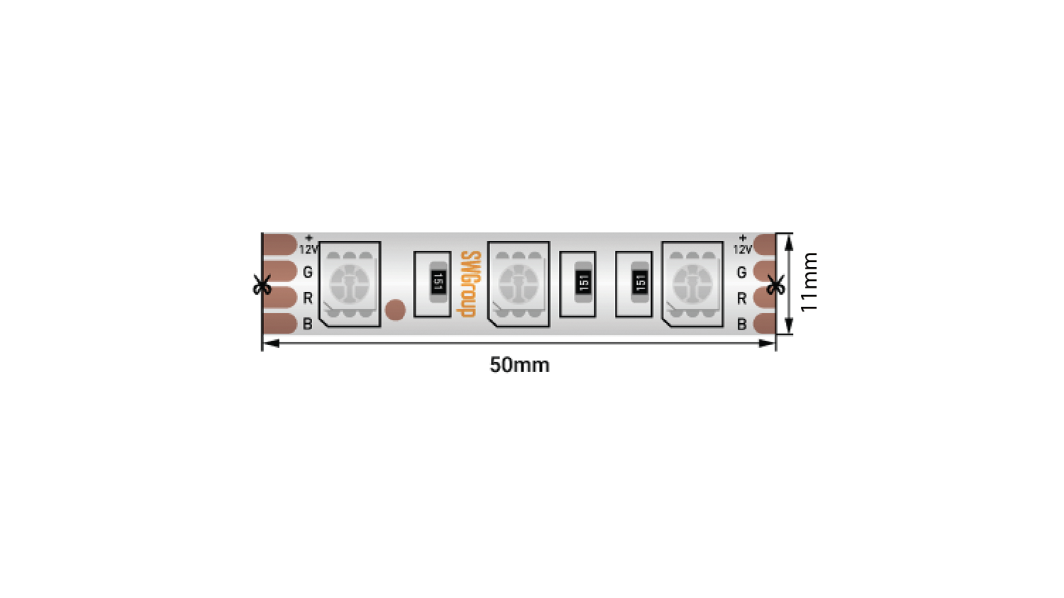 Лента светодиодная 14,4 Вт/м SMD5050, 12В, IP66, RGB, в чехле 3М