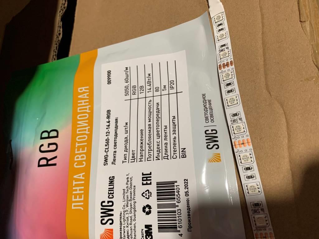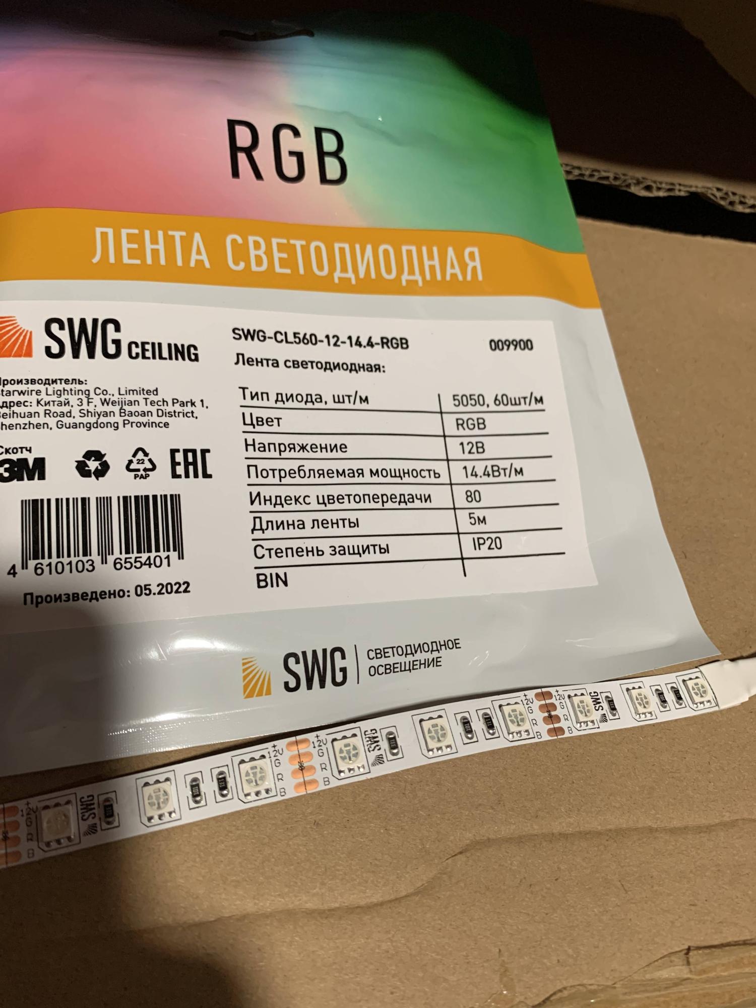 Лента SWG ceiling 14,4Вт/м SMD5050, IP20, Цвет RGB 12В, 3M
