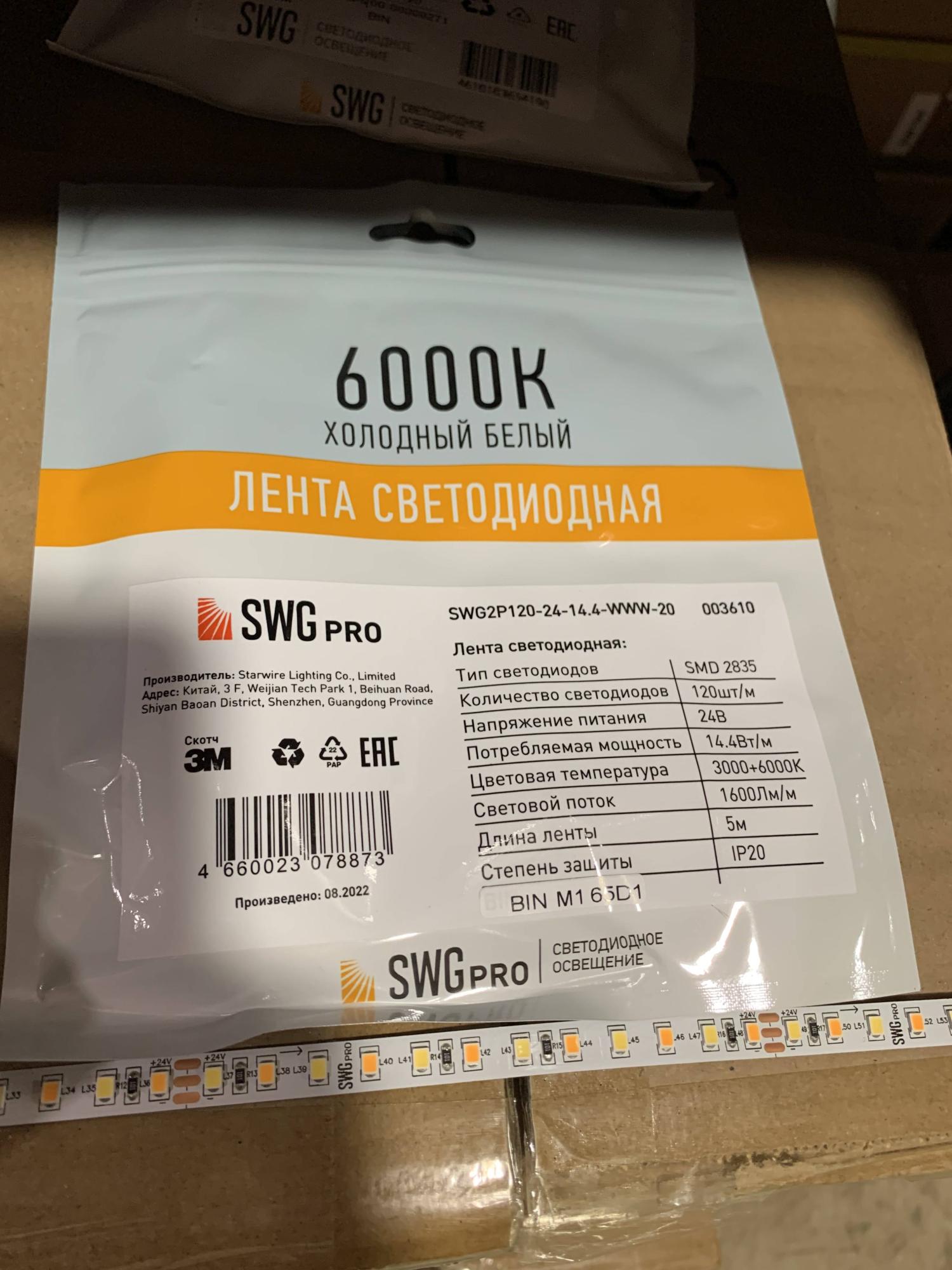 Лента светодиодная SMD 2835, 120 LED/м, 14,4 Вт/м, 24В , IP20, Цвет: Микс (3000+6000K)