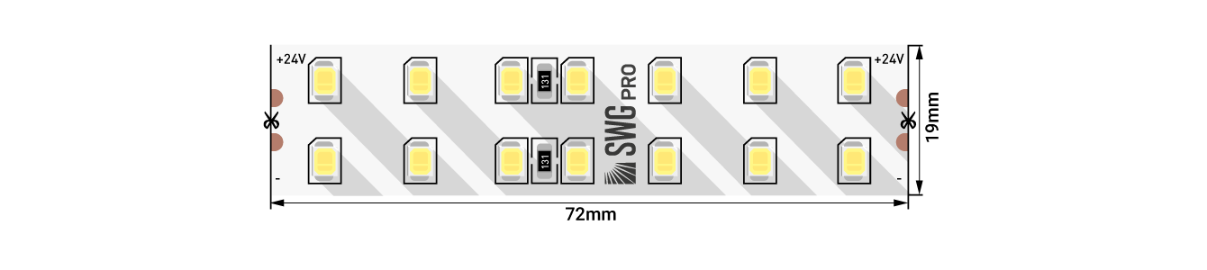 Лента светодиодная SMD 2835, 196 LED/м, 20 Вт/м, 24В , IP20, Нейтральный белый