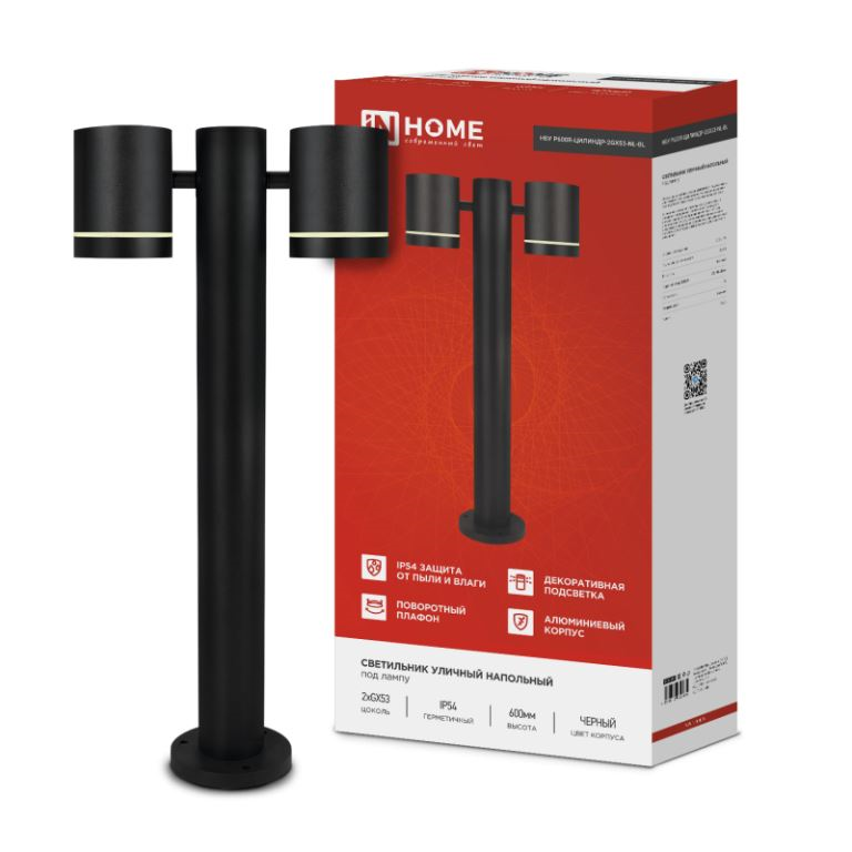 Светильник уличный напольный НБУ P600R-ЦИЛИНДР-2GX53-NL-BL алюминиевый под лампу GX53 600мм черный I
